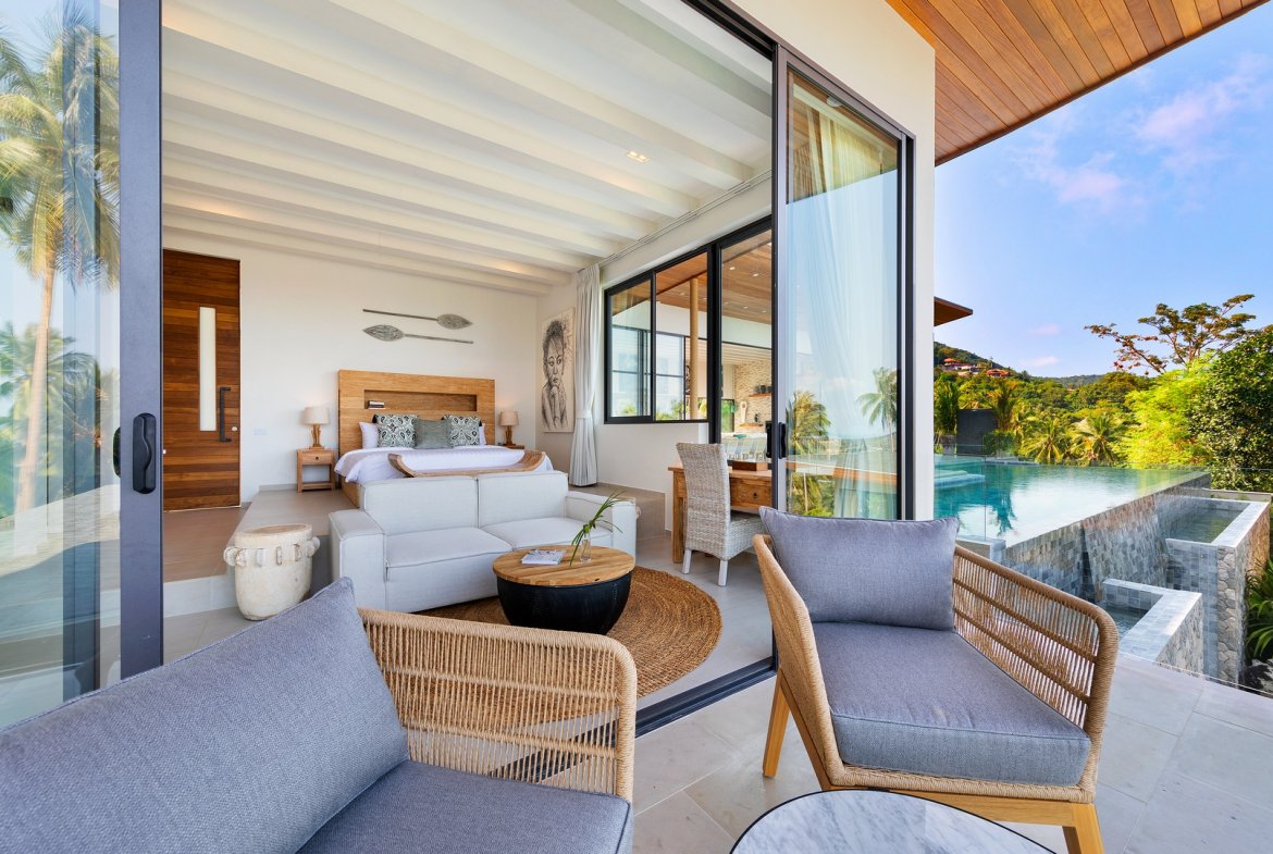 L’agence M.I.S.S vous invite à découvrir l’une des villas les plus exclusives de Koh Samui. Perchée sur les hauteurs, cette propriété offre une vue panoramique époustouflante sur la mer et un design contemporain alliant élégance tropicale et confort absolu.