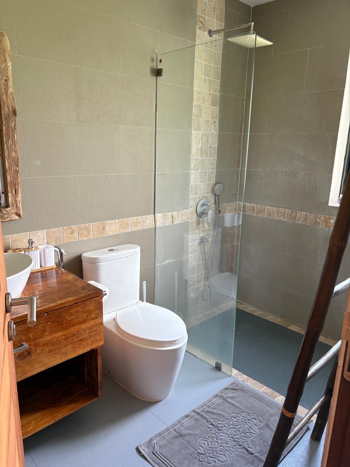 ♦️ Extérieur : Un magnifique jardin tropical de 400 m² entièrement arboré et un parking privé.