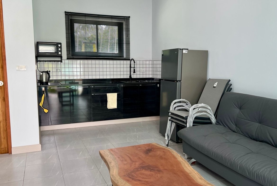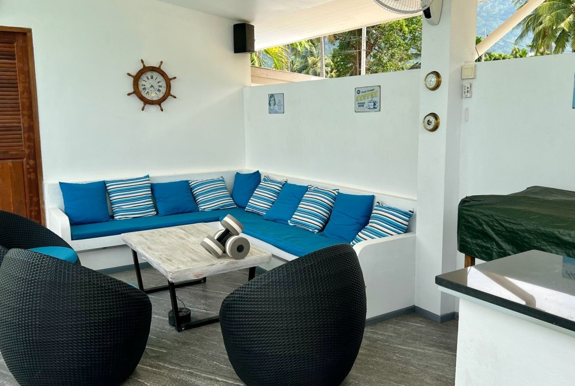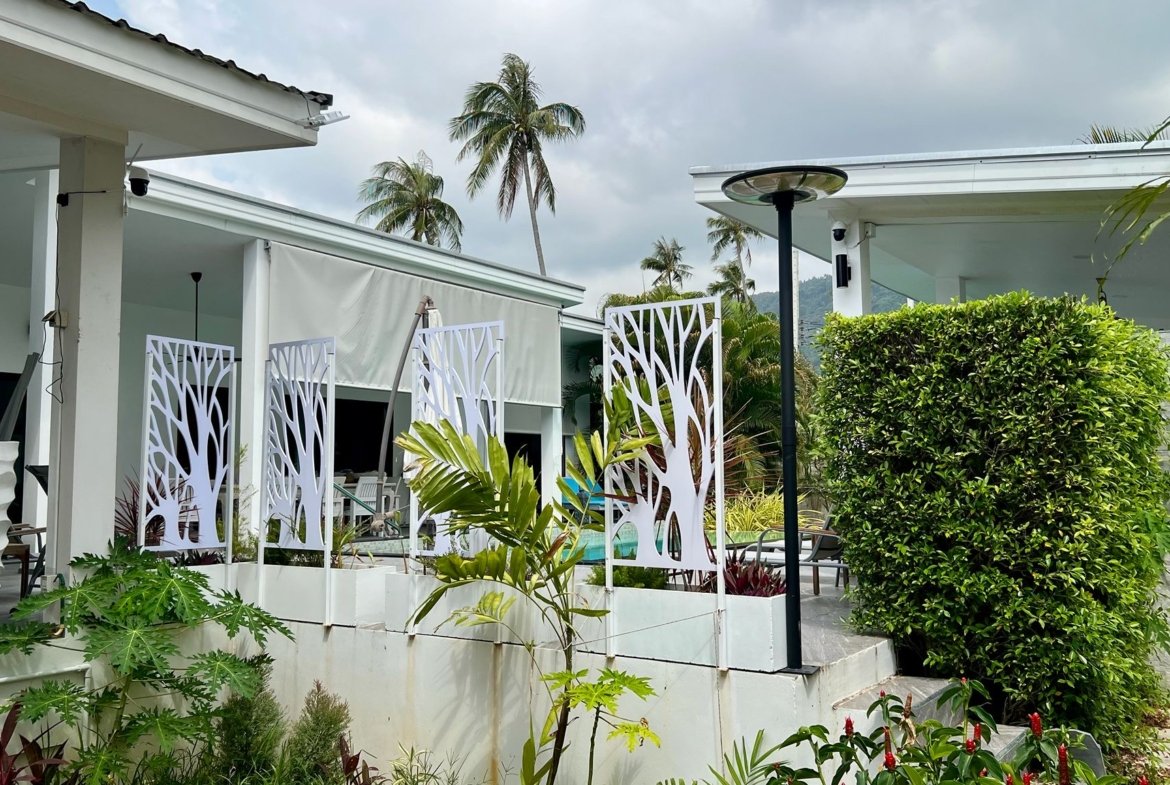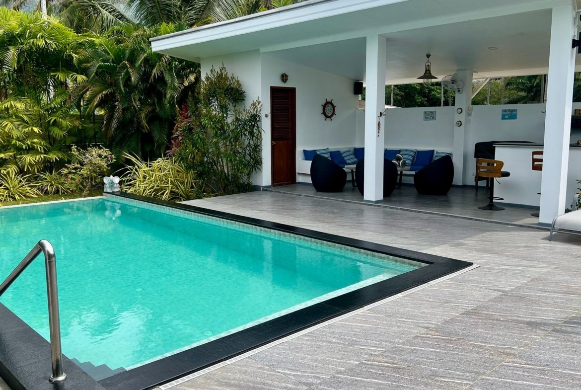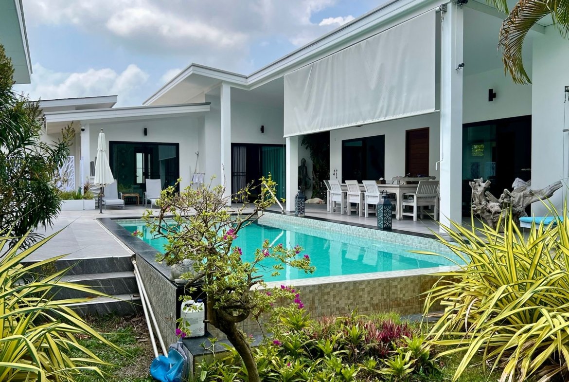 La propriété comprend une habitation principale de 3 chambres et une dépendance autonome de 40 m² (chambre, salon, cuisine, SDB). Cette flexibilité est parfaite pour recevoir la famille, les amis, ou pour un usage professionnel. Sans charges de copropriété, avec son propre puits et un titre Chanote, cette villa vendue avec sa compagnie est une opportunité clé en main pour une installation sereine à Koh Samui.