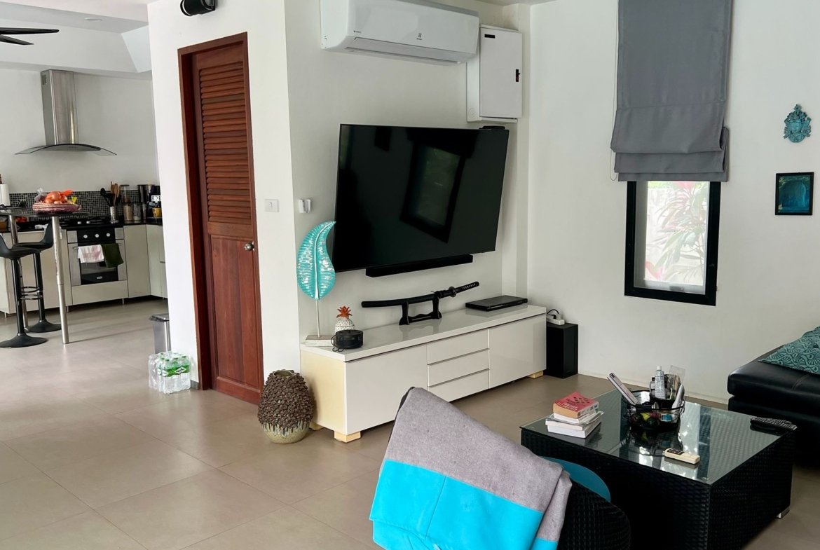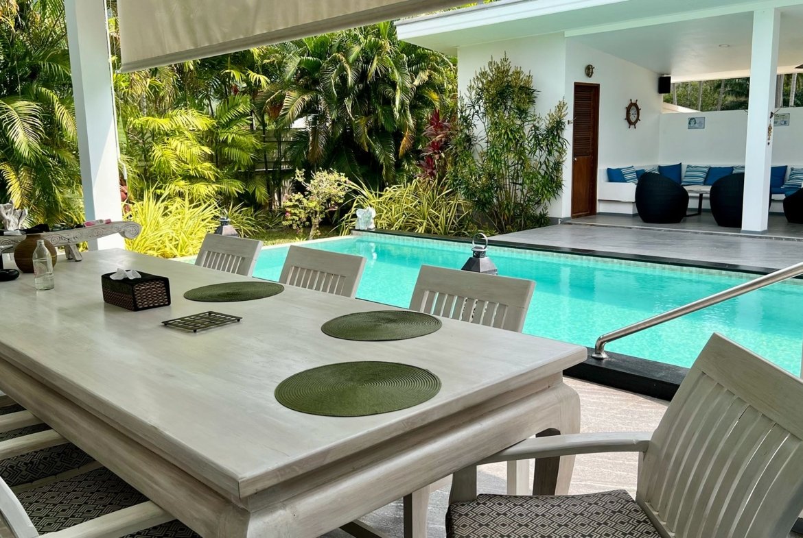 L’agence M.I.S.S. Real Estate vous présente une propriété rare, spécifiquement pensée et aménagée pour une vie à l’année sur l’île. Située dans le secteur calme de Namuang, cette villa de 160 m² s’intègre parfaitement dans un jardin arboré et luxuriant de 830 m², offrant une fraîcheur naturelle et une intimité totale. Proche des commerces, des cascades et à seulement 5 minutes de l’école internationale, elle allie confort et praticité quotidienne.